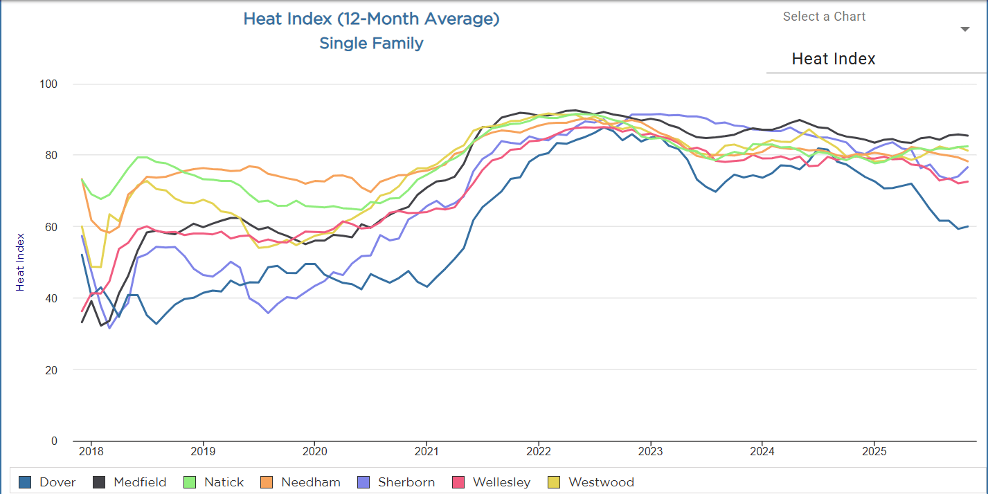Heat Index: Strong overall, but not as dominant as Medfield late in the timeline. The market is competitive, but buyer fit matters more.